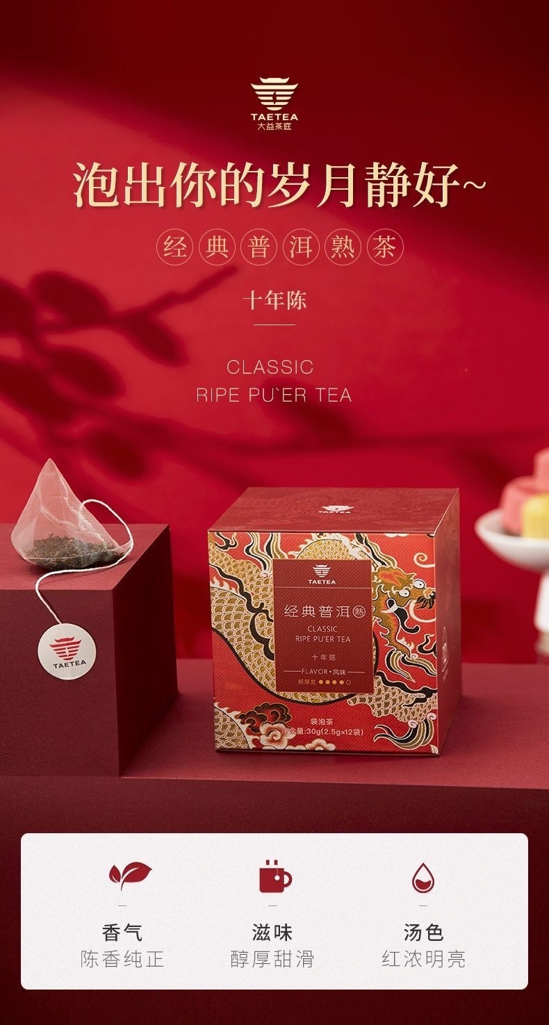 大益普洱熟茶經典普洱熟茶十年陳三角立體茶包30克(12袋)